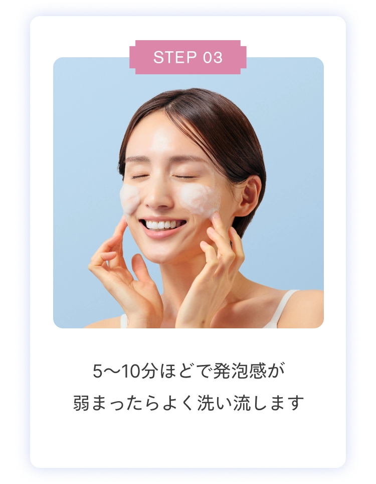 高濃度炭酸*ながらもやさしく長く発泡するため安心してお使いいただける設計です。万が一刺激を感じる場合、すぐに洗い流してください。